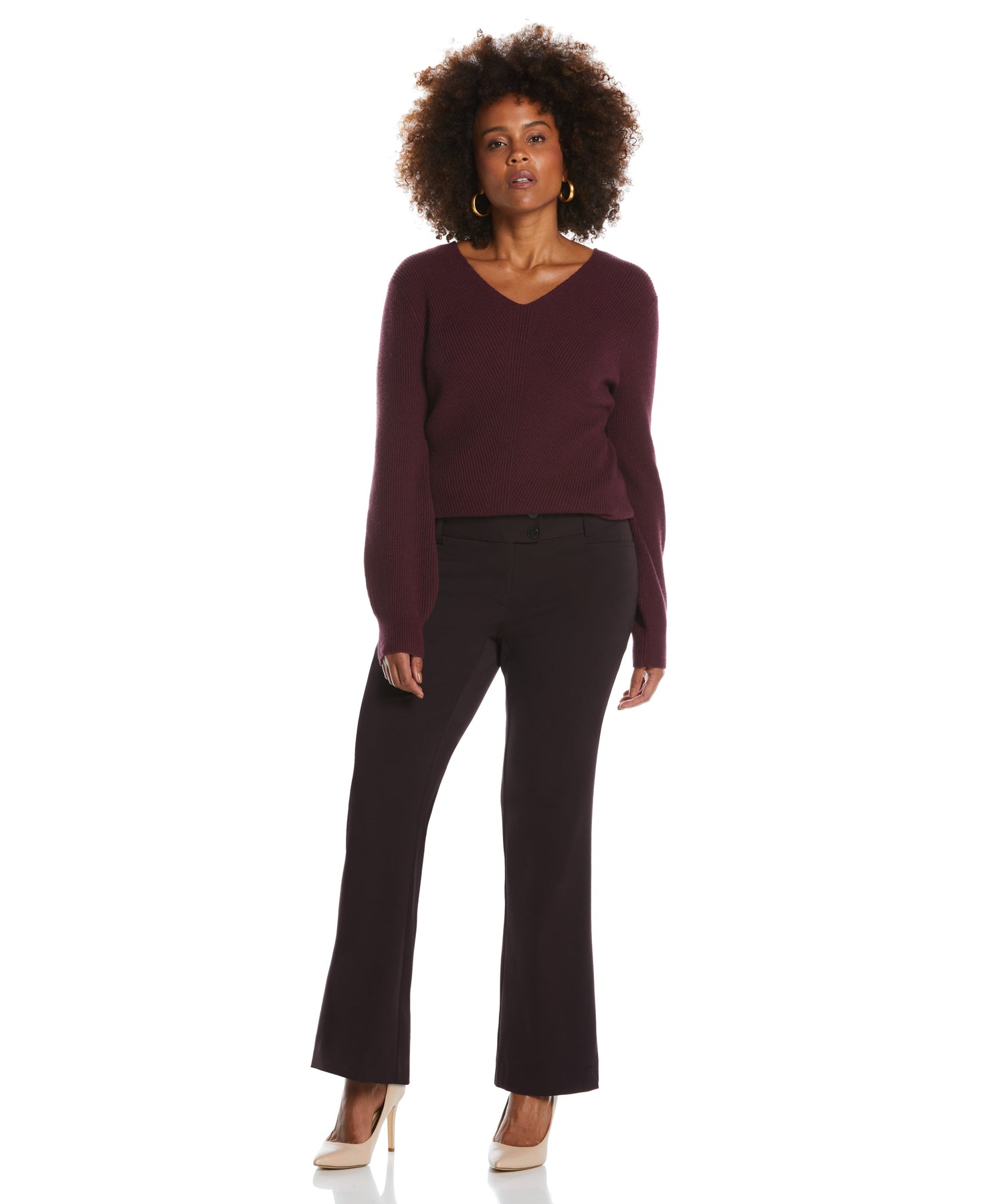 Elegance and comfort combine in these chic bootcut gabardine pants. Pair these pants with a gorgeous top for the perfect office or after-hours look! Rafaella's curvy fit contours your silhouette, flatters your body and is relaxed through the waist and thighs. Two-way stretch fabric moves with you ' comfort that lasts all day.