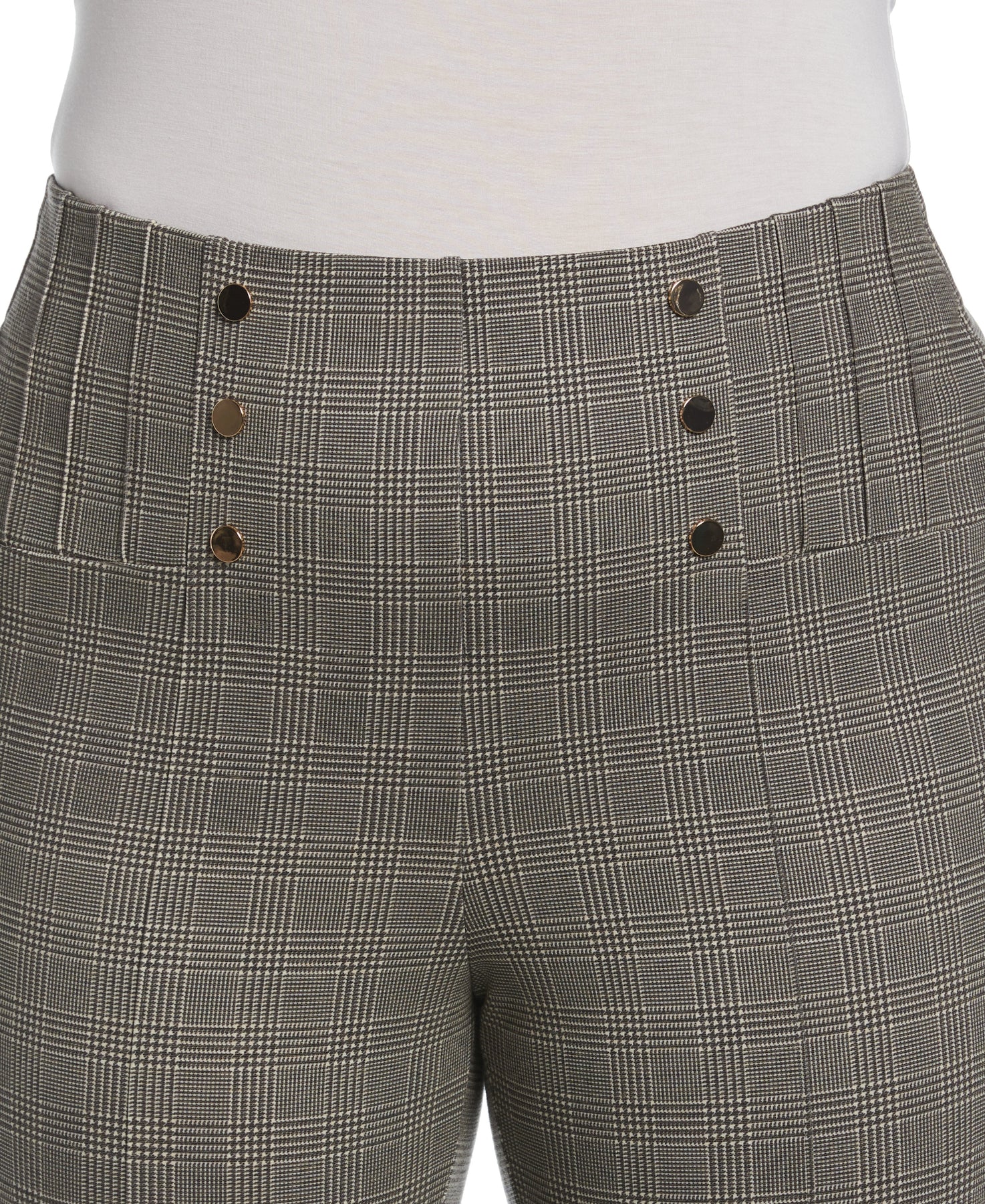 Dressed up or down, these Ella ladies' trousers are sure to impress. Featuring a plaid print, soft gold rivet detailing and front and back seams, these pull-on dress pants for women are equally stylish and versatile. They're crafted from a ponte fabric that retains its shape and offered in a modern fit that's sleek and flattering. The bootcut ankle fits comfortably over your favorite footwear and has a fresh look that's sure to stand out.