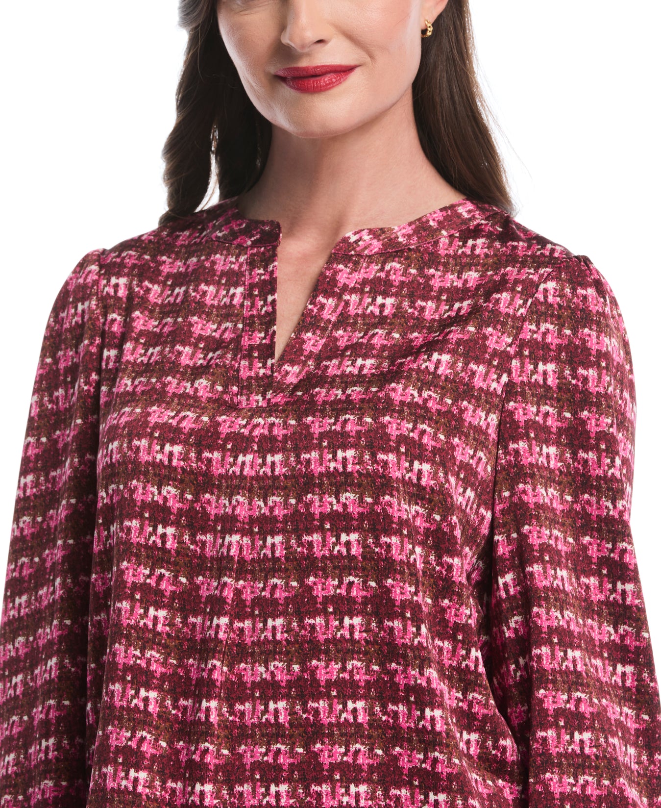 NEW! Crosshatch Print Split Neck Popover Blouse