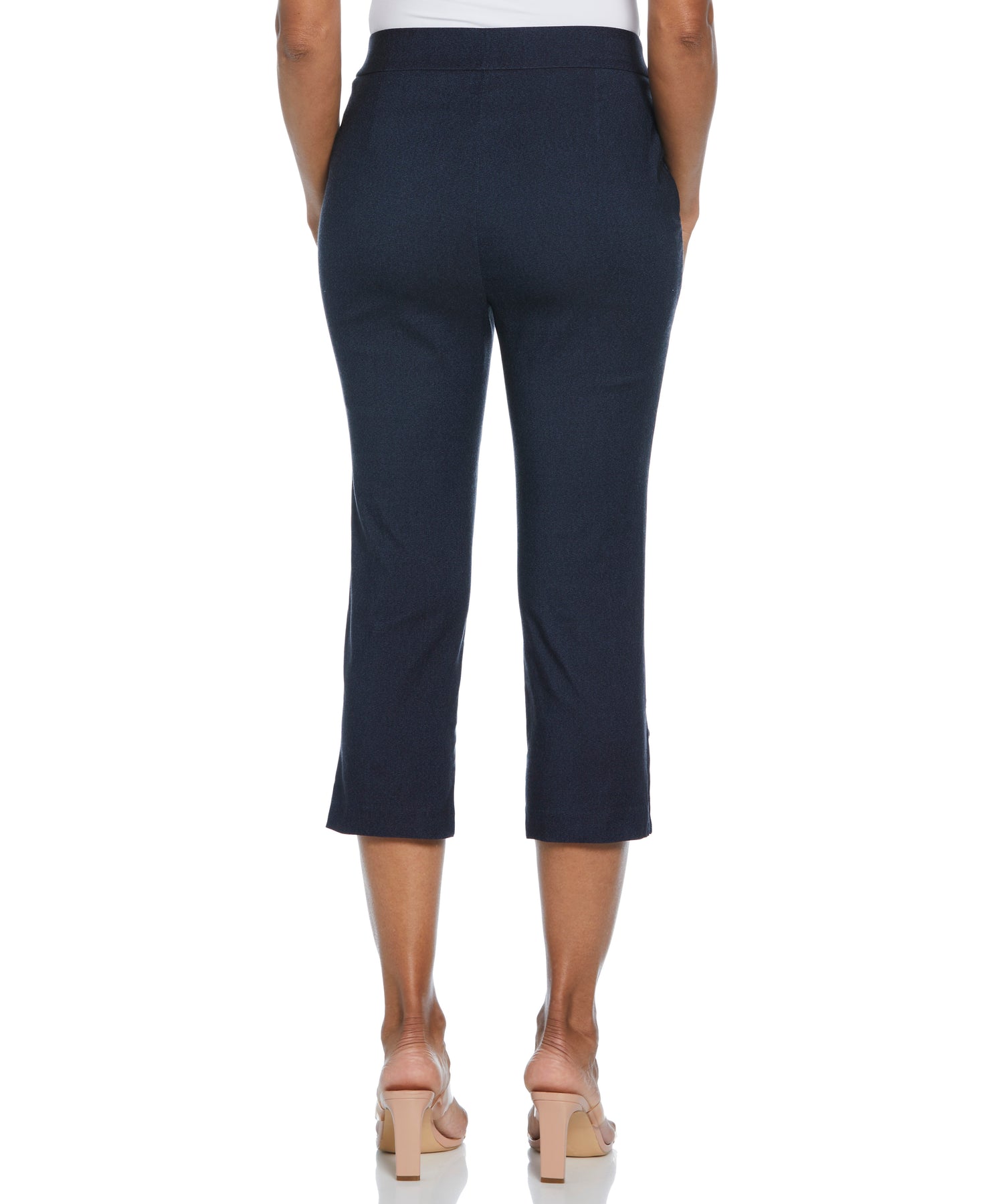 These Rafaella capri pants for women are the ideal blend of everyday comfort and style. The indigo rinse gives these capri pants a denim-like look that's just right for casual days while the stretch fabric offers a more comfortable fit and feel than traditional denim. The snap buttons at the hem gives these cropped pants a subtle and stylish finishing touch.