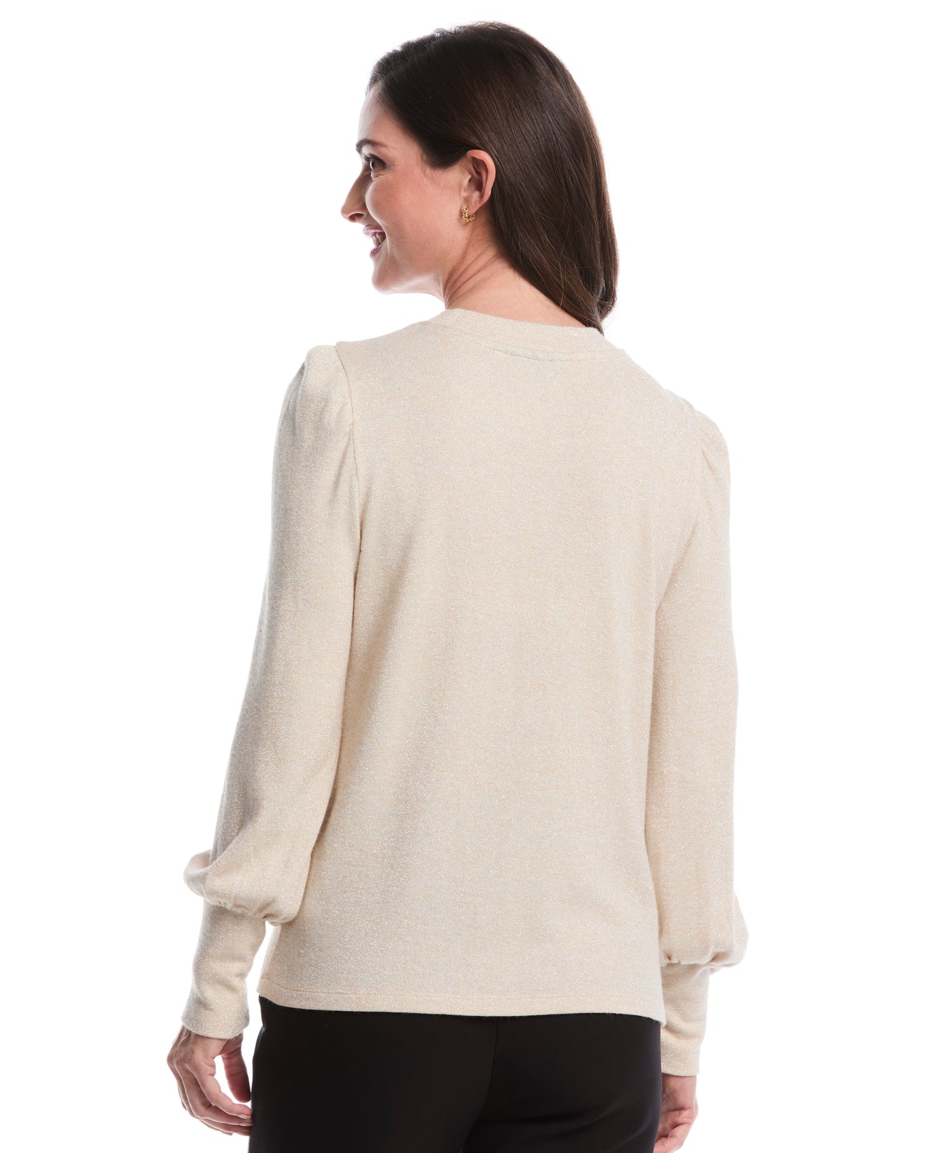 NEW! Metallic Puff Sleeve Crew Neck Top