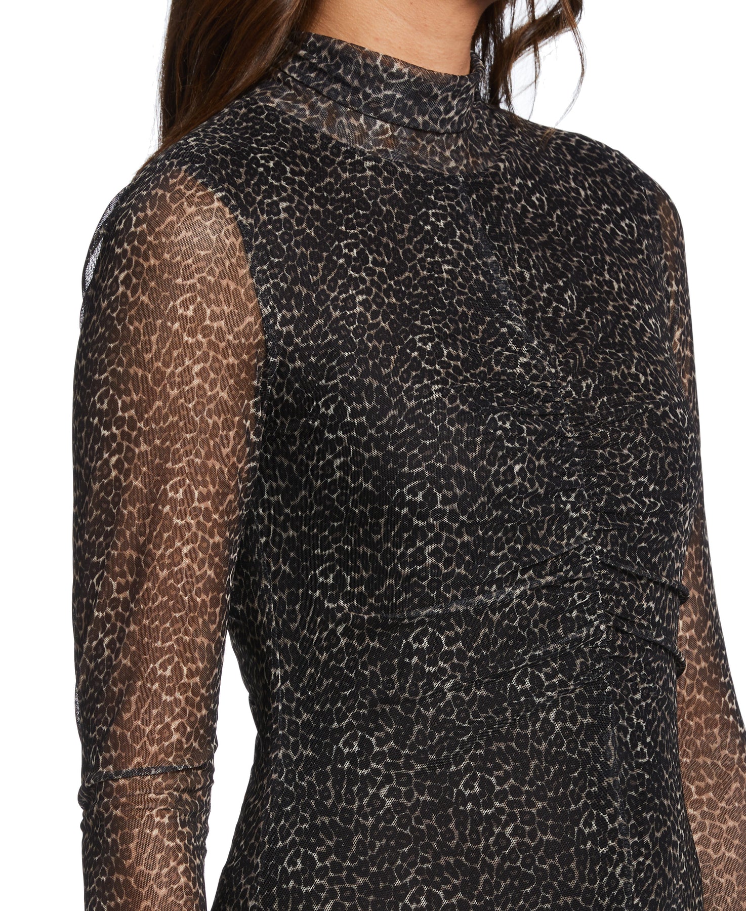 Mock Neck Mesh Midi Dress