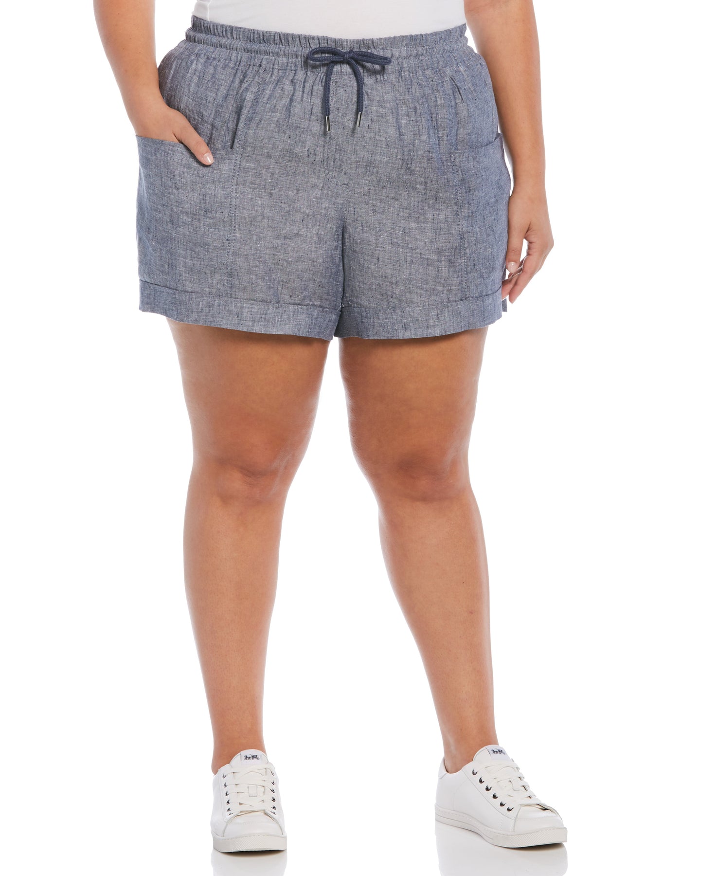Made from breathable all-linen fabric, these Rafaella women’s shorts are perfect for keeping cool in warm and sunny weather. The linen shorts are designed with a sleek modern fit, and they have an encased elastic and a drawcord at the waist to ensure that they pull on easily and stay comfortably in place. Pockets at the sides and back add convenient storage space for small items while you’re out and about.