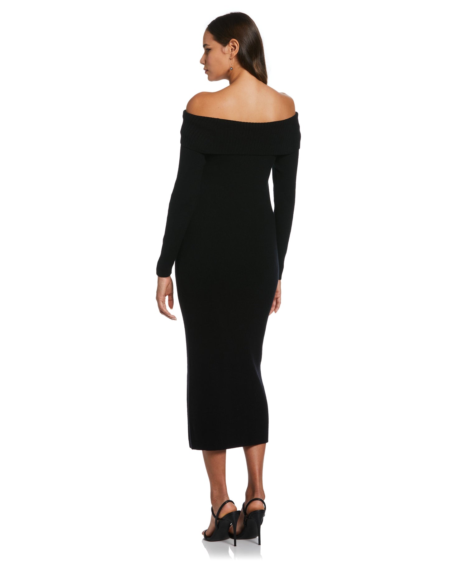 Featuring a wide ribbed cowl neck that can be worn on or off the shoulder, this elegant Ella long sleeve sweater dress is designed for both comfort and style. A flattering midi length makes this sweater dress the perfect seasonal ensemble for holiday gatherings and evenings out. The fabric blend gives structure without being stiff.