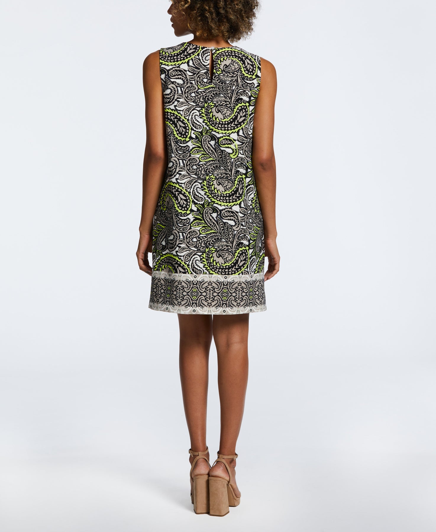Featuring a timeless silhouette, this sleeveless shift dress from Rafaella will quickly become one of your go-to garments. The women’s dress has bust darts and side slits at the hem to help ensure a flattering and comfortable fit. A keyhole opening at the back with a loop and button closure adds a sophisticated detail. It’s crafted from a double weave fabric with stretch, helping to keep you comfortable through season after season. This shift dress is finished with a beautiful paisley pattern that adds a unique touch. Whether you're looking for a dress to wear with a cardigan at the office or with bare arms for a special event, this Rafaella shift dress is always a winning choice.