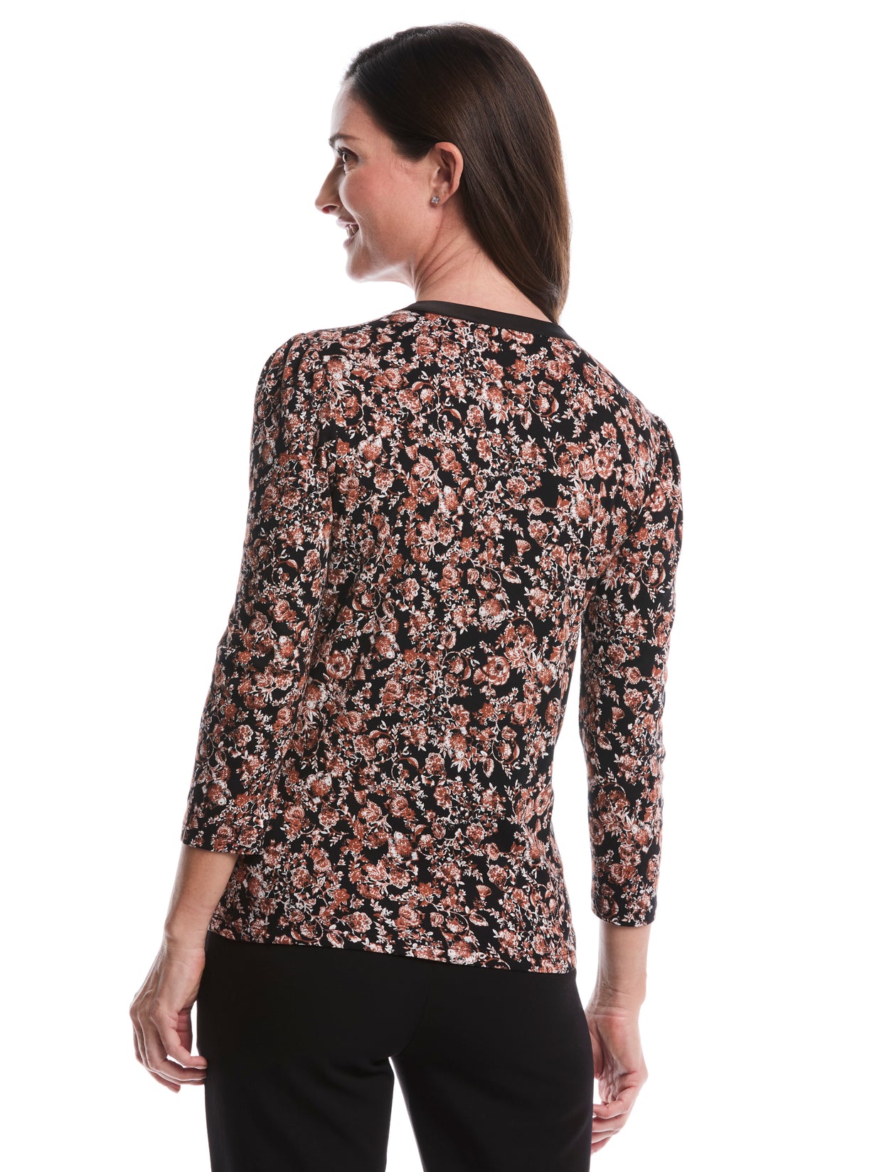 NEW! Petite Floral Print 3/4 Puff Sleeve V-Neck Top