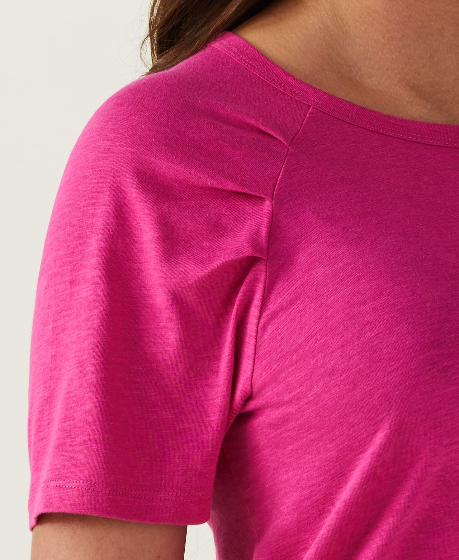 Pleats at the raglan seams give the design of this Ella ladies’ top a fresh update. The printed ladies’ t-shirt is crafted from a soft and lightweight cotton blend fabric to help keep you comfortable anywhere the day takes you. Machine washable and designed with a flattering modern fit, the short sleeve top will quickly become a fixture of your wardrobe.