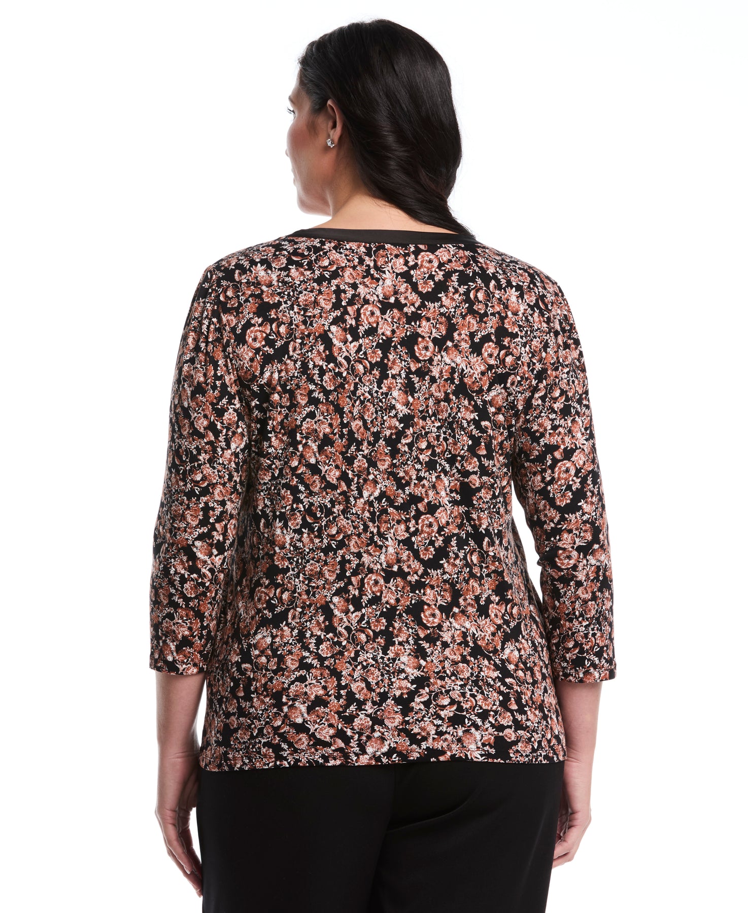 Plus Size Floral Print 3/4 Puff Sleeve V-Neck Top