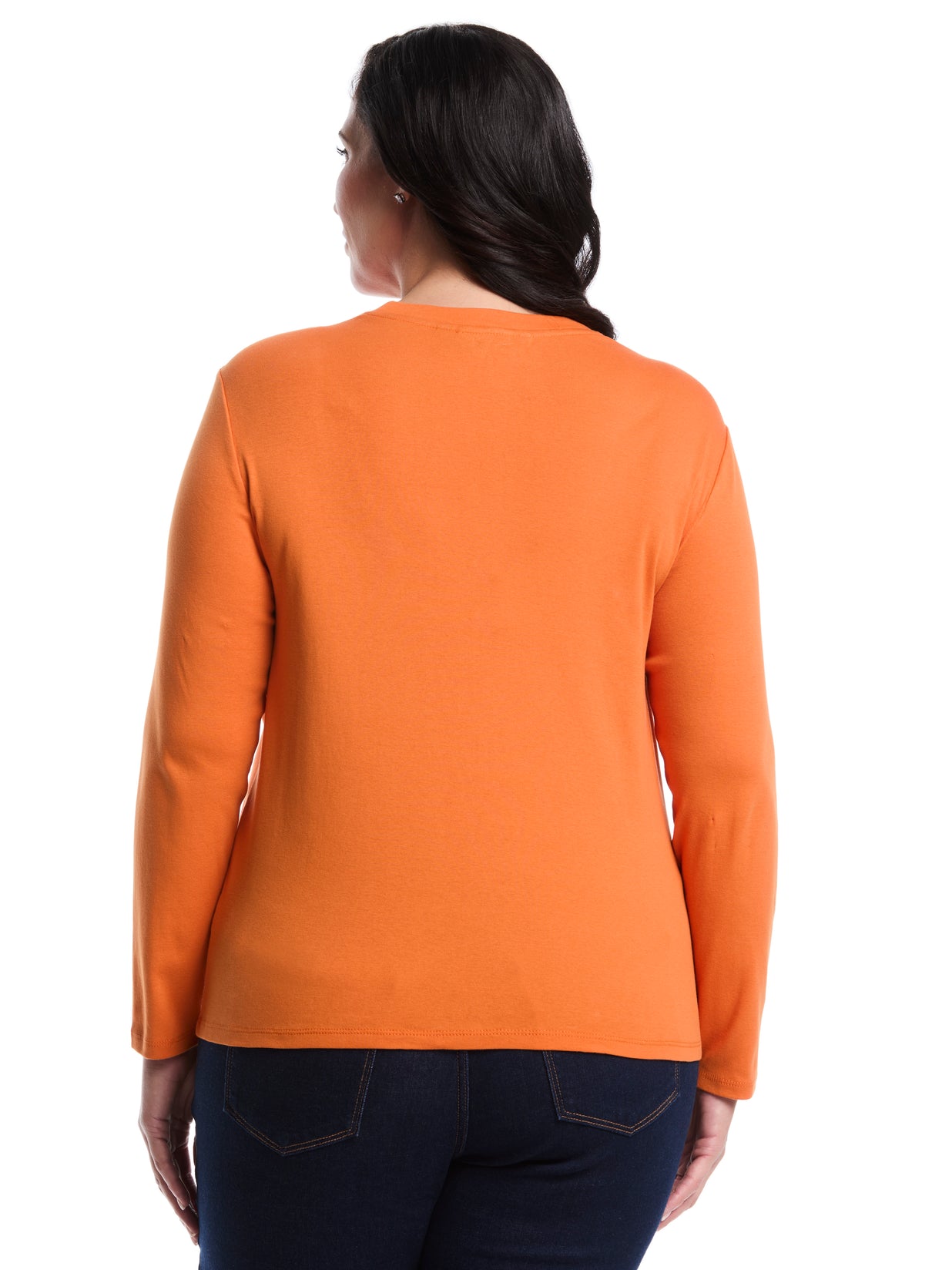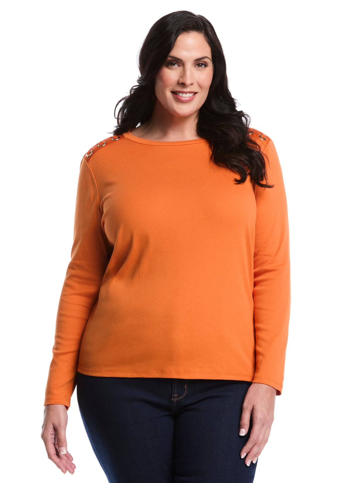 Plus Size Laced Crew Neck Top (Harvest Pumpkin)