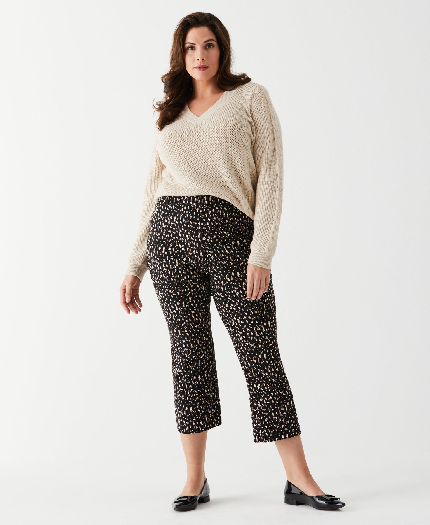 Plus Size Printed Crop Boot Cut Pant with Belt