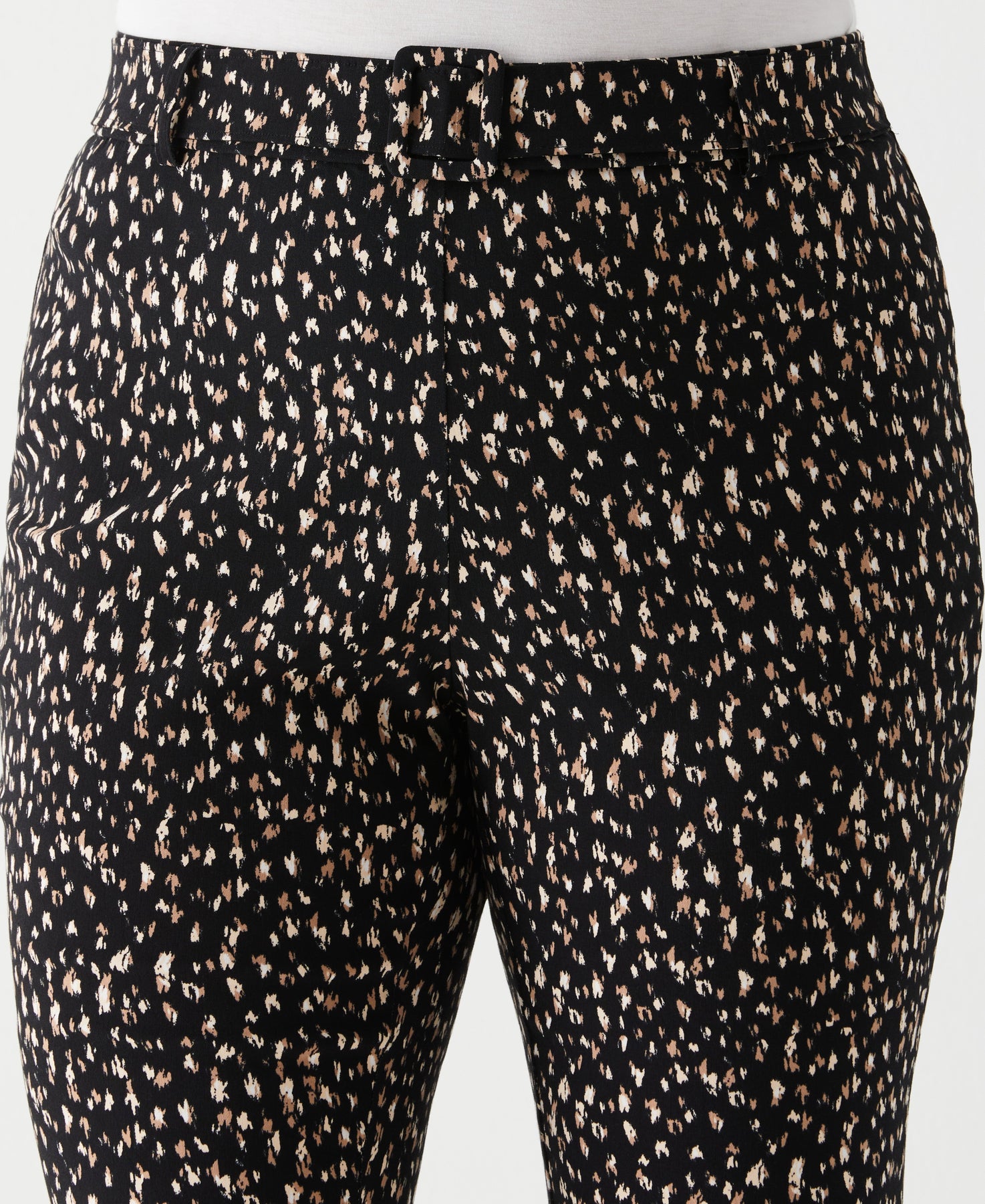 Add style to your workwear with these Ella Rafaella trousers for women that feature a chic animal print pattern to elevate your professional look. Made for comfort as much as fashion, these ladies' pants are crafted from supreme stretch fabric with an elastic waistband and convenient pull-on style to help ensure a comfortable fit with every wear. The decorative self-covered buckle and faux welt pockets add a touch of sophistication while the cropped length and modern fit offer an all-around flattering silhouette. Finished with back darts for a tailored look, these ladies' trousers are versatile, stylish and perfect for any occasion.