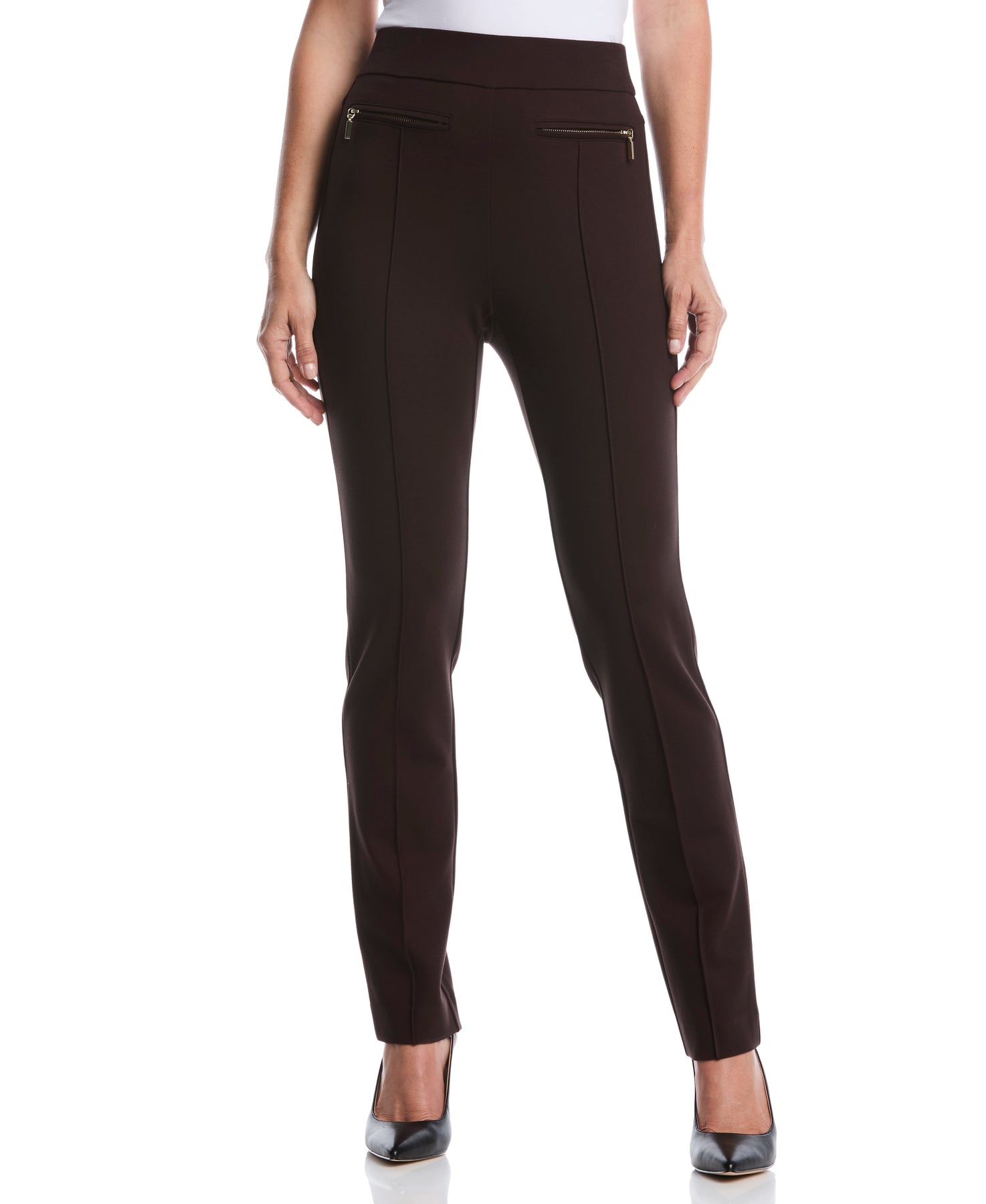 From the office to date night, these Rafaella dress pants for women keep your look sleek and on point. These flattering dress pants come in a solid color design to dress up or down as needed. Made for comfort as much as style, these women's dress pants feature stretch fabric and an elasticized waistband for easy wear.