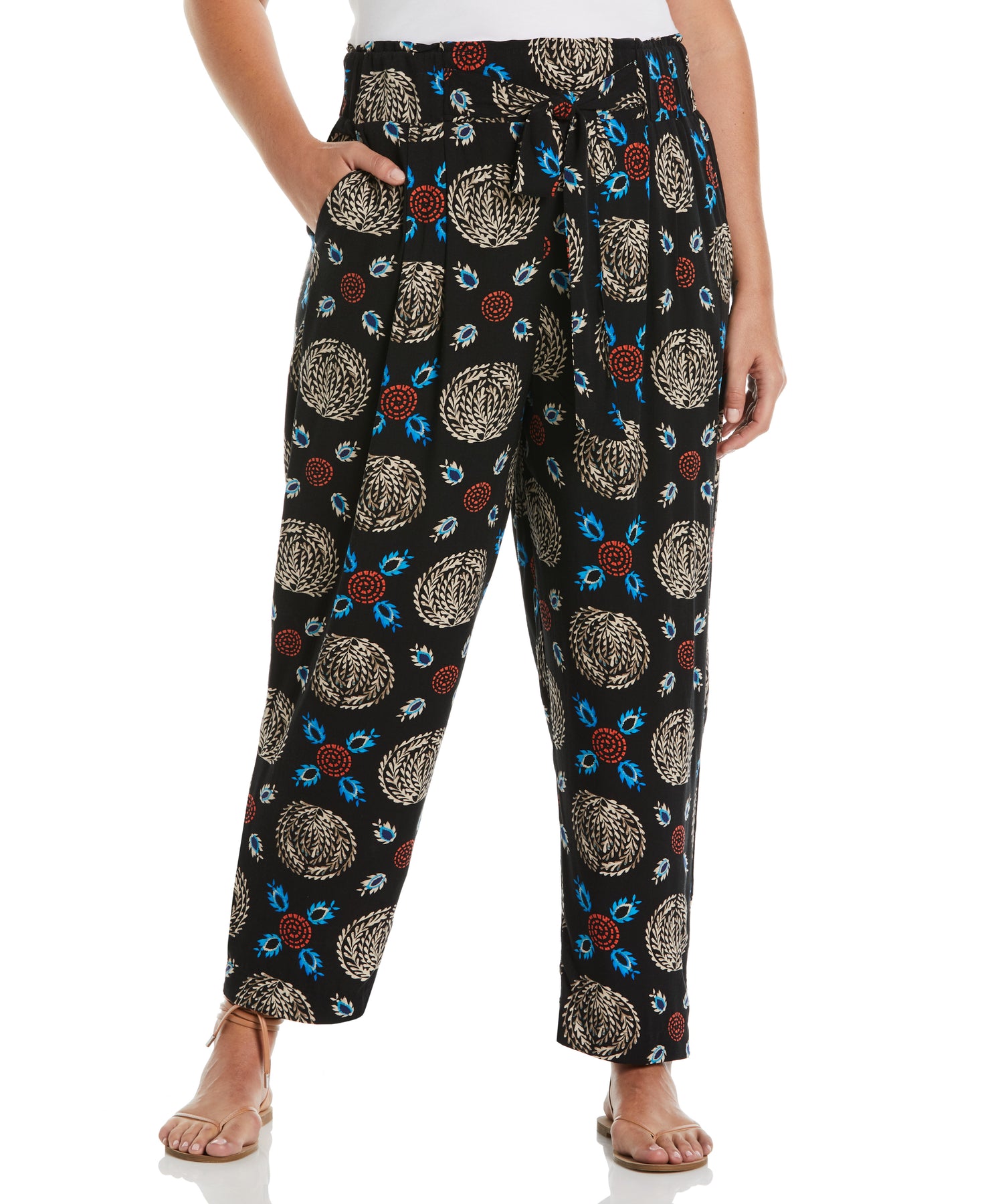 Ideal for relaxing on warm and sunny days, these paper bag pants from Rafaella are made from a soft woven challis fabric that offers a cool and lightweight feel. The women’s ankle pants have an easy pull-on design, with encased elastic at the back of the waist to help customize the fit. Front pleats and an attached fabric tie help to provide a flattering fit, and the legs are tapered for a sleek look. A matching top that’s available separately helps to create a perfectly coordinated outfit.