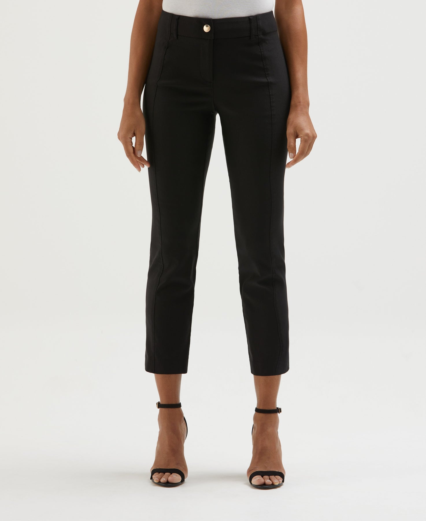 Made with luxuriously smooth fabric, these cropped pants from Rafaella offer both impressive comfort and a stylish sheen. The cropped dress pants for women feature elasticated side panels at the waist to help ensure a flattering fit. They sit at your natural waist, with a sleek straight leg design that works beautifully both at the office and out on the town. Belt loops make them easy to dress up with accessories for a night out.