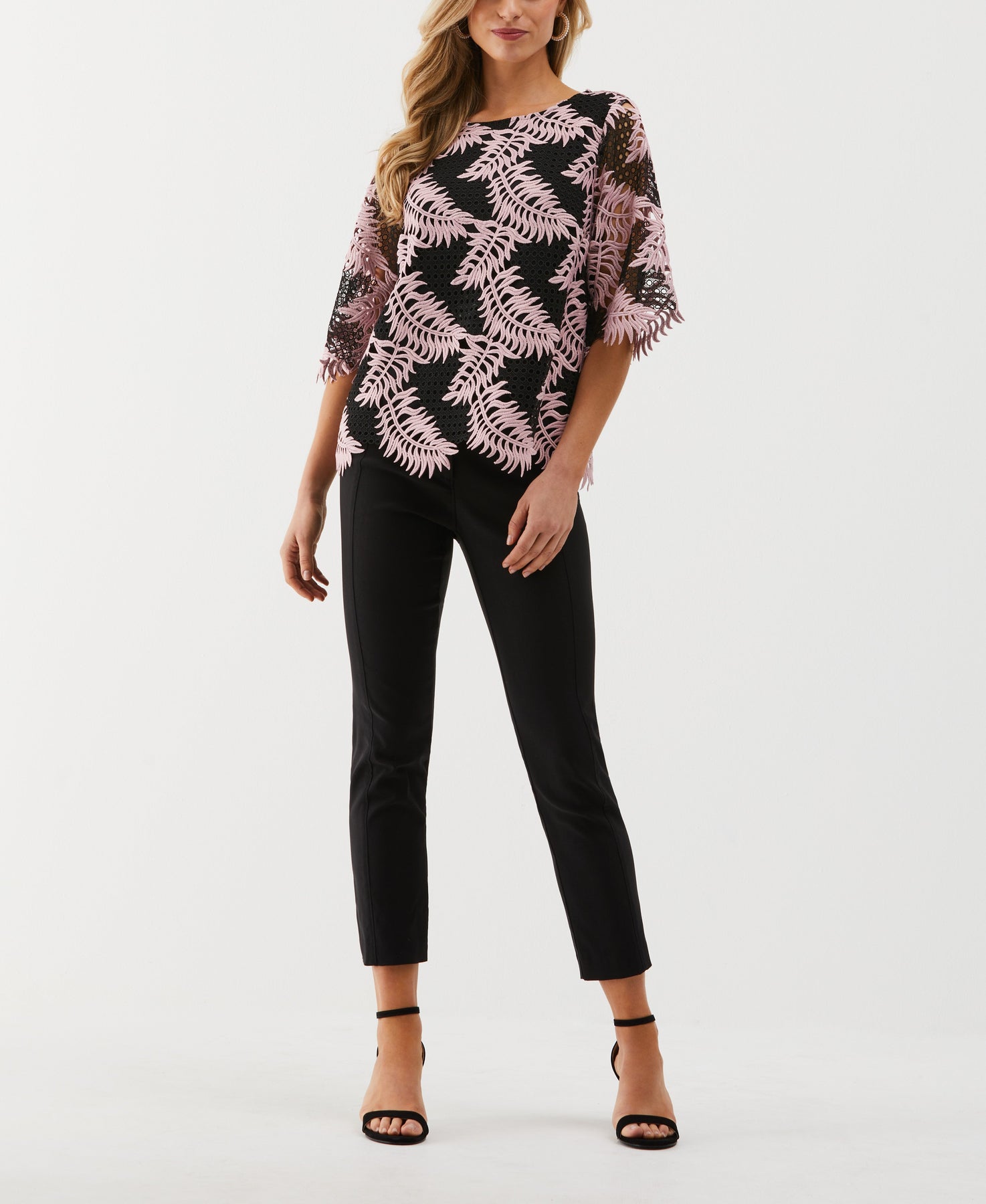 Add some elegant style to your wardrobe with this elbow sleeve shirt from ELLA Rafaella. Made with light lace fabric, the women’s top is lined along the body for comfort and modesty. The unlined sleeves are scalloped for added style points, and the scalloping is echoed on the hem to help it drape beautifully over your favourite pants and skirts. The ladies’ top features a flattering modern fit, with bust darts to help it fit comfortably over your curves.