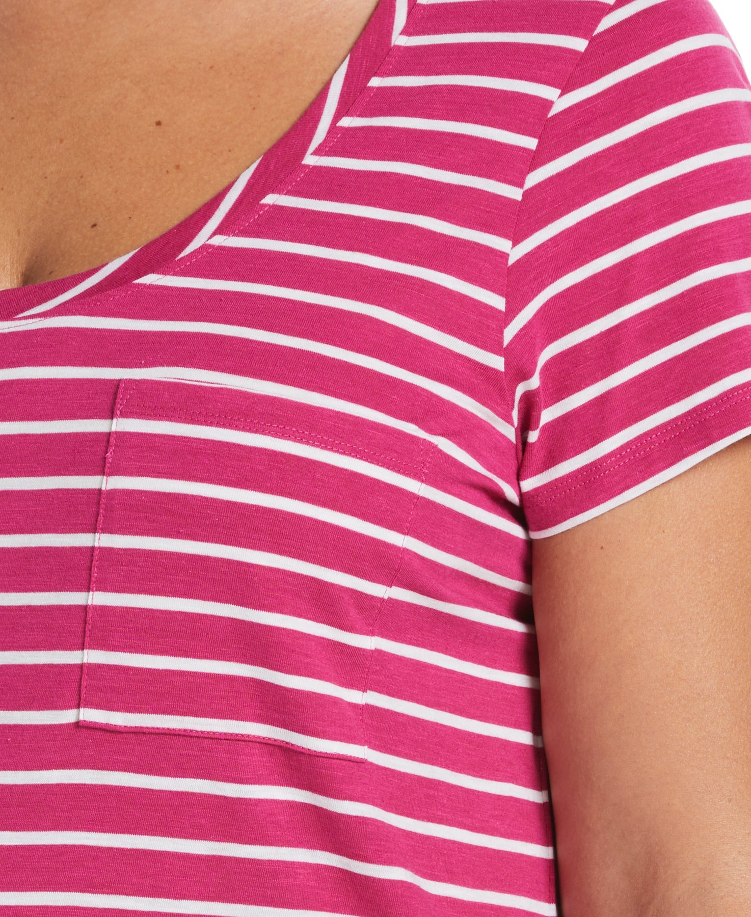 Soft, lightweight and designed with a flattering modern fit, this Ella women’s t-shirt will be your new best friend on the weekends. The striped short sleeve top is made with slub fabric for a casual, modern look, and it’s machine washable to keep it easy to wear again and again. A chest pocket adds a relaxed finishing touch to the design.